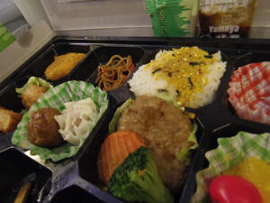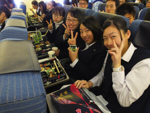 飛行機の中では、お弁当を食べたり、友人と話したり、