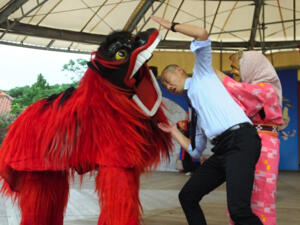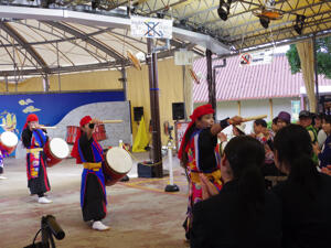 集合写真を撮影後、玉泉洞とエイサーを見学しました。