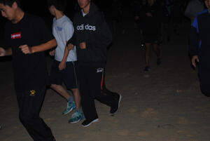 波の音やさらさらの砂の上で、いつもとは違った空気の中、みんな楽しそうに汗を流していました。