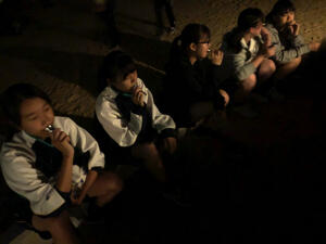 夕食後、長田勝哉先生をお招きし、戦争当時の様子についてお話しいただきました。