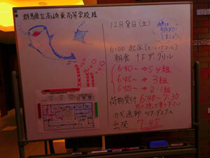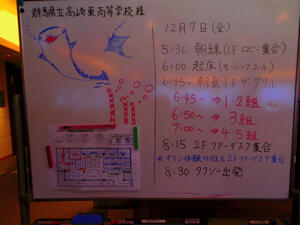夕食後には、翌日の班別タクシー研修に向けて、班長会議を行いました。