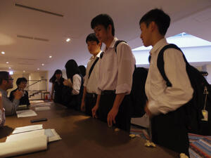 現地ガイドさんの説明にしっかりと耳を傾けています。