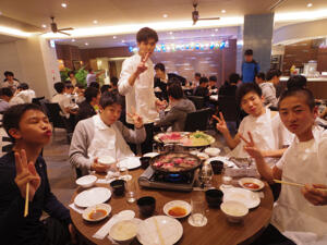 修学旅行最後の夜は、全員で室内バーベキューを行いました!