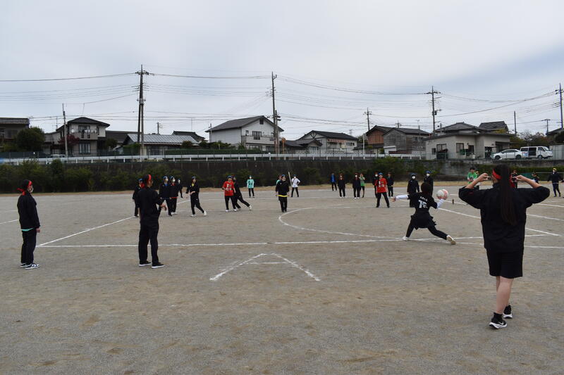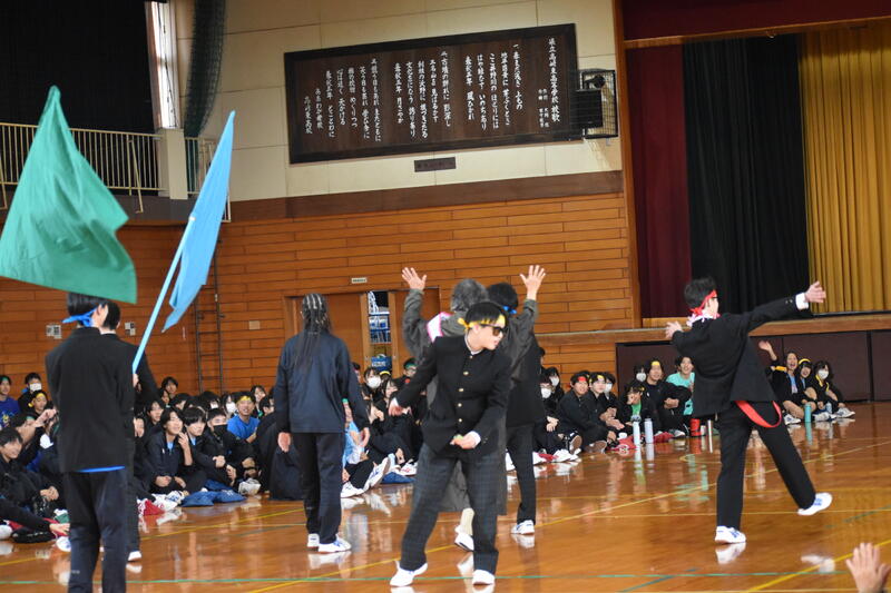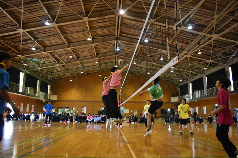 1日目の球技大会はバレーボール、バスケットボール、卓球、サッカー、ソフトボール、ハンドボールの6種目行われました。全生徒が赤団、青団、緑団、黄団に分かれての競技となり、各競技で熱戦を繰り広げていました。昼休みには有志によるダンスが披露され、7名の生徒が盛り上げてくれました。どれもレベルが高く、全員で盛り上がっていました。