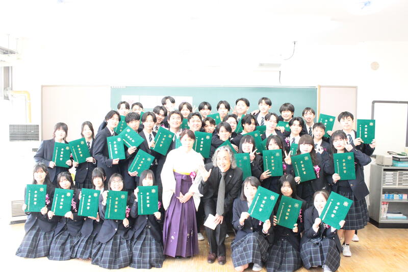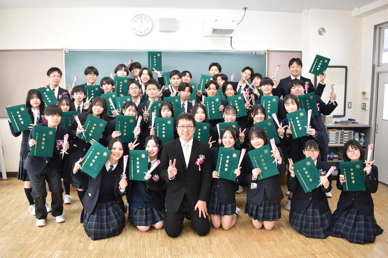 第40回 卒業証書授与式(クラス編) 投稿日時 : 03/03 群馬県立高崎東高等学校Webページ管理者 卒業証書授与式のあと3年生にとって最後のホームルームがありました。 各担任からのメッセージに感動する生徒、仲間と楽しそうに笑いあう生徒、担任にサプライズをする生徒など一人ひとりが思い出に残る時を過ごすことができました。 卒業おめでとう! {{options.likeCount}} {{options.likeCount}}