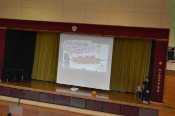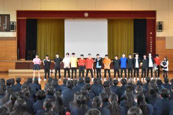 午後には部活動紹介が行われました。各部3分という短い持ち時間の中、一年生の勧誘に向けて工夫を凝らした紹介となっていました。部活動の充実は学校生活の充実にもつながります。約1週間の部活動体験で様々な部活動をまわり、3年間続けられる部活動に入部してほしいと思います。