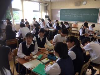 7/8(月)と9(火)は通常授業ということで、マヌレワ高校生はバディの授業に参加して終日過ごしました。担当者の授業では、マヌレワ高校生に日本語と英語の自己紹介をしてもらって、高東生から英語で質問をしました。その後、アイスブレイキングとしてニュージーランドのレクリエーション(Bang!やPukena)などを英語で説明してもらってそれに取り組み、今度はだるまさんが転んだや英語でのフルーツバスケットなどのレクを英語で説明して、彼らと一緒に取り組みました。英語Ⅲの授業では、テキストの内容に関して意見交換を行ったり、サイトトランスレーションシートをマヌレワ高校生とバディで読み合う活動などをしました。英語表現Ⅱでは校則について英語でディスカッションをしました。まず、ニュージーランドの校則を英語で説明してもらい、次に高東の校則について英語で説明し、違いについてペアやグループで討論しました。姉妹校交流に参加しているマヌレワ高校生は日本語を履修しているので、本校の授業に参加することにより様々な教科について日本語で勉強することができます。英語の授業では、実際に生徒達と意見交換して活躍してくれています。友人として英語で話してくれるので、生徒達も積極的に英語でやりとりをしています。彼らのお陰で教室が「生きた英語」が飛び交う場所に変わりました。