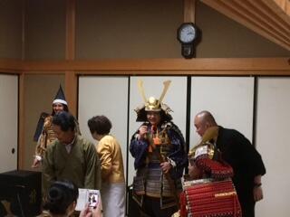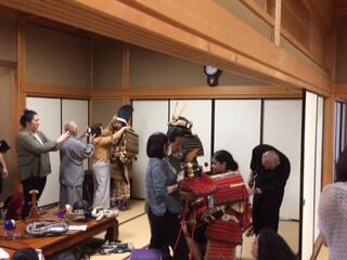 「甲冑装着」では3つの甲冑を着させて頂きました。作成時代により、素材・形状がことなり重さも違うことを着ることを通して生徒達も体感できたと思います。本当に貴重な体験ができて生徒達もマヌレワ高校の先生方も大変感動していました。鎧の着付けは大変でしたが希望者全員に着付けをして頂き、本当に感謝しています。