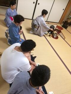 「茶道体験」では、実際に着物でお茶をたてて頂いて、作法から道具について説明して頂きました。部屋の装飾も七夕をテーマに素敵に飾られていて、掛け軸やお花も飾ってあり本格的な茶道体験をさせて頂きました。生徒達にも心に残る茶道体験になったと思います。ありがとうございました。